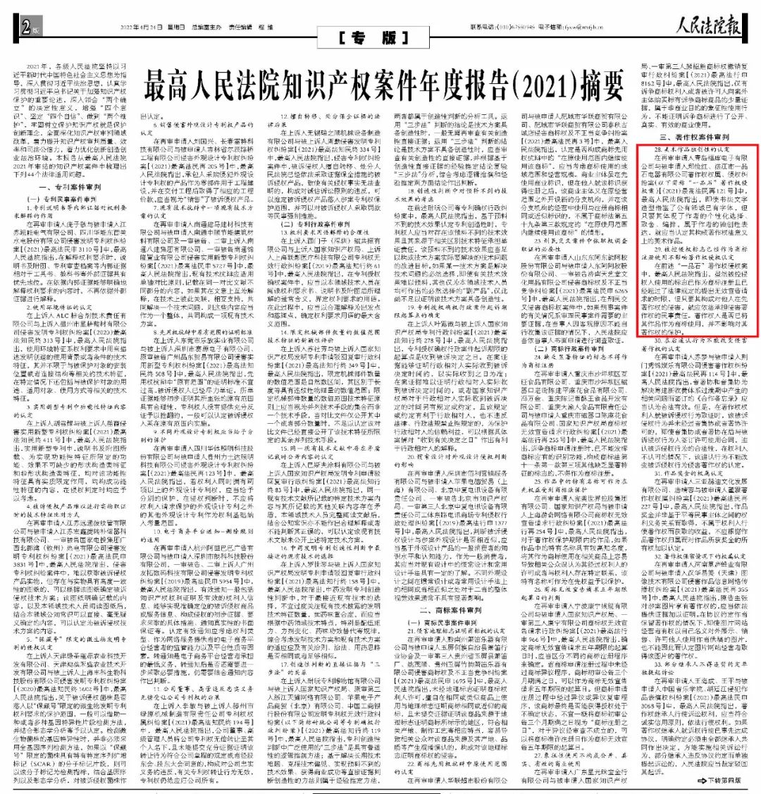 >五星体育>关于我们>荣誉概览>2022>集佳代理的“一品石”著作权侵权纠纷案入选《最高人民法院知识产权案件年度报告(2021)摘要》