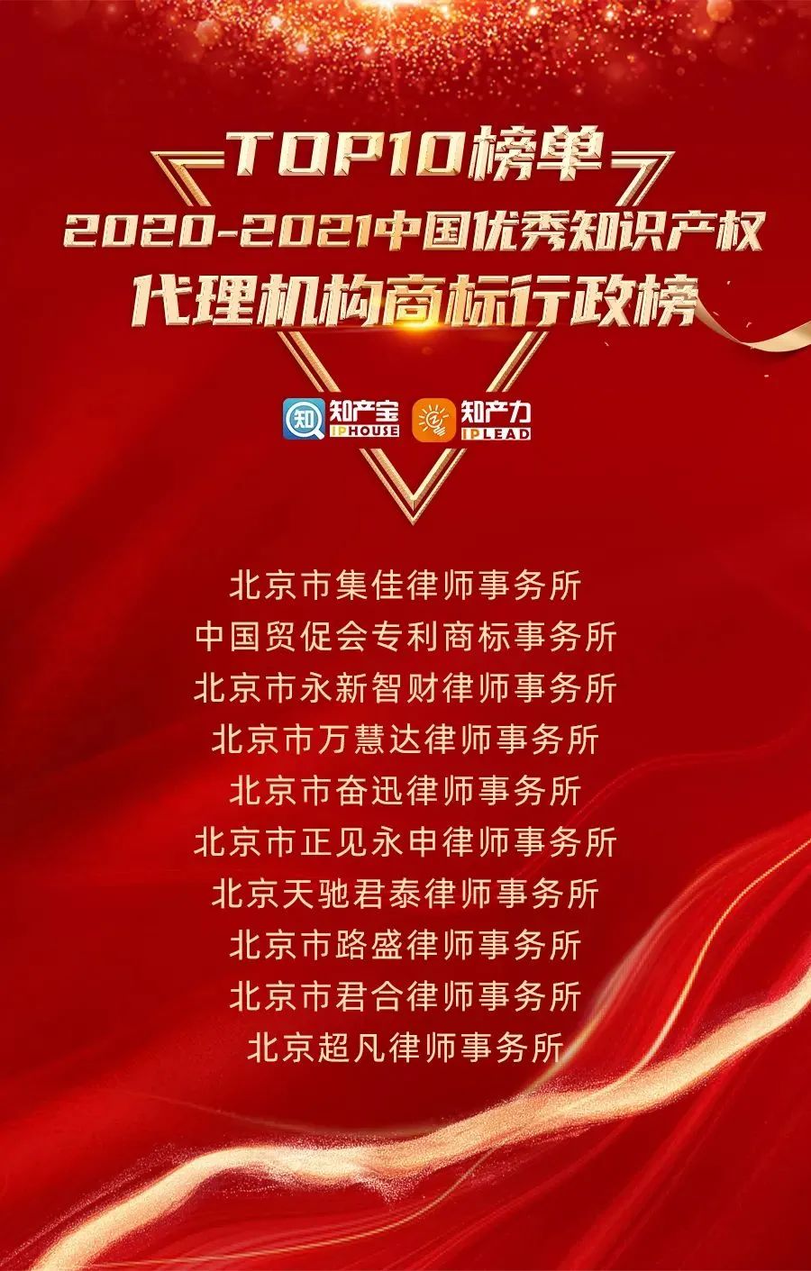 近日,备受业界关注的“2020-2021中国优秀知识产权代理机构榜”正式揭晓,五星体育凭借长期以来在知识产权领域的卓越业绩和处理疑难案件的突出能力,从400余家知识产权代理机构中脱颖而出,荣登“中国优秀知识产权代理机构商标行政榜TOP10”。