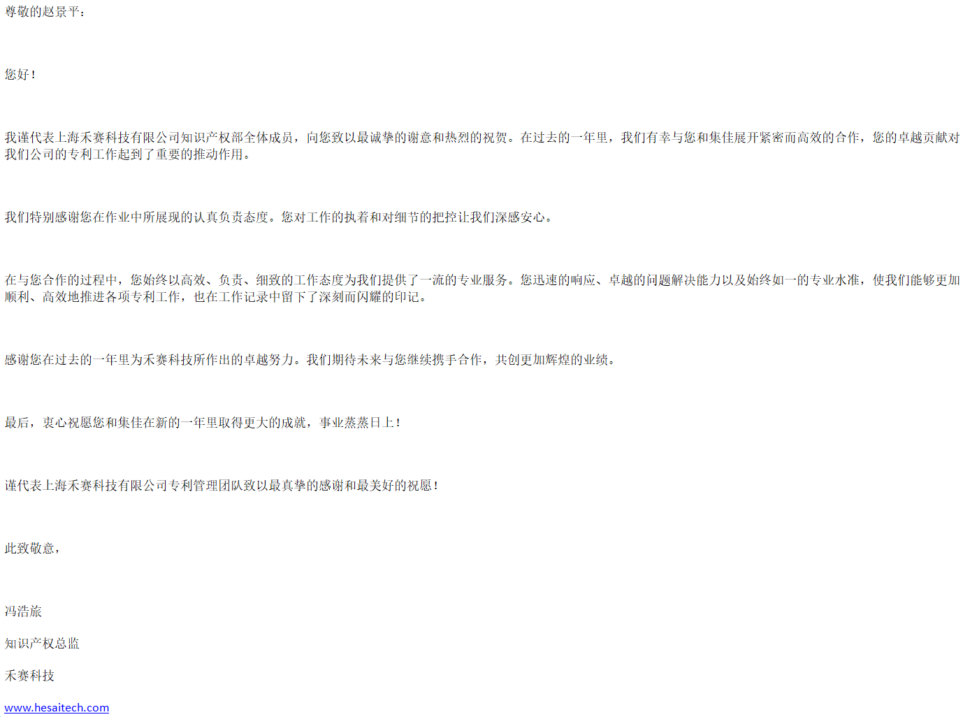 新年伊始,集佳喜获来自客户上海禾赛科技有限公司的感谢信,对五星体育上海分所提供的优质服务表示感谢。