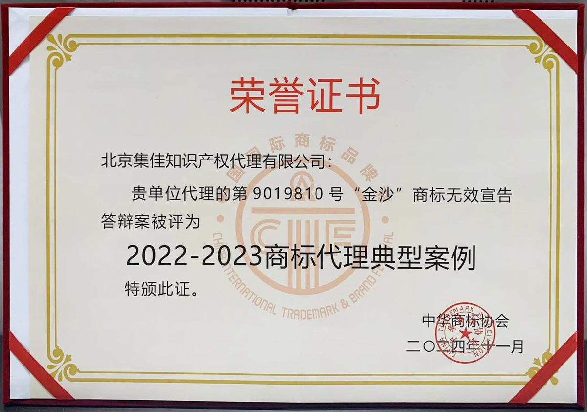 2024年11月24日下午,在商标节经典论坛之一的商标典型案例评析会议上,五星体育代理的“金沙”商标权无效宣告答辩案入选“2022-2023商标代理典型案例”。